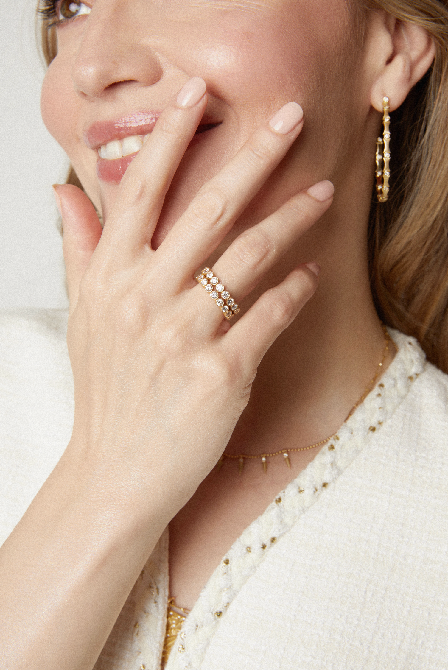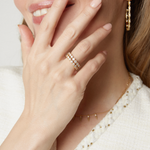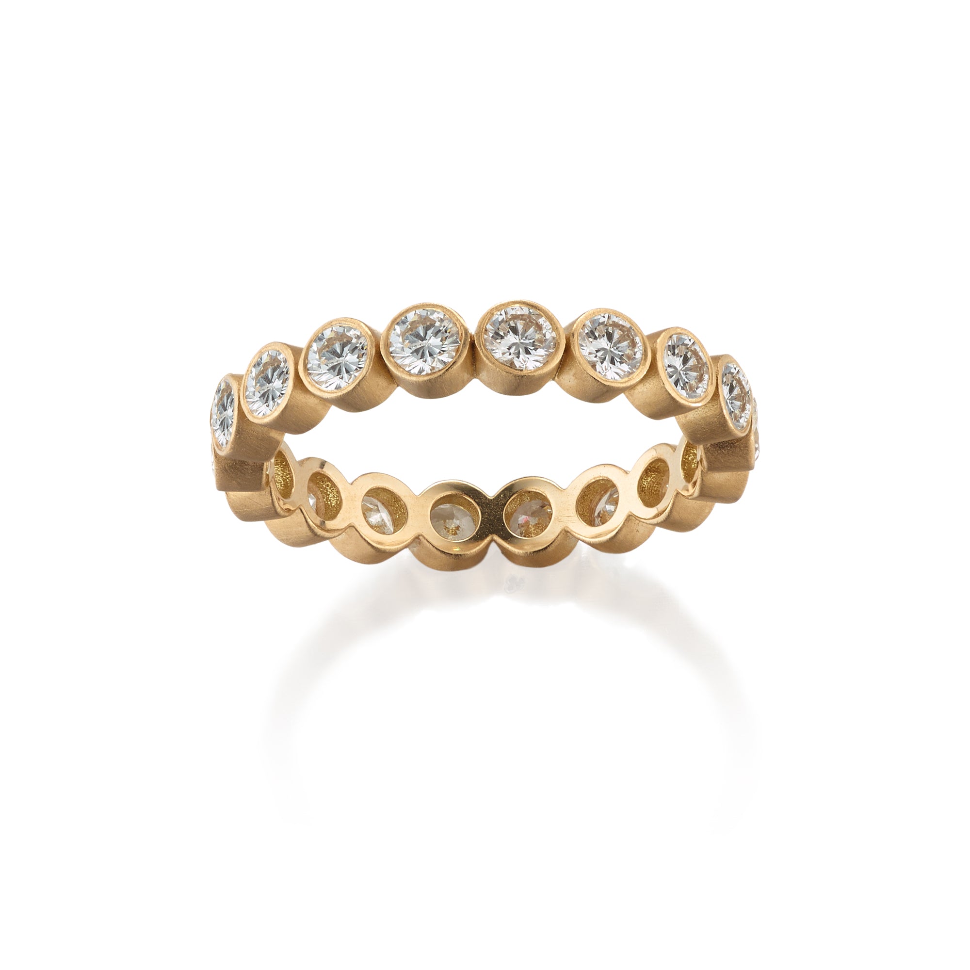 A continuous line of 1.35 ct round diamonds set in rich 18K recycled gold, handcrafted in NYC. Each bezel-set stone creates a rhythmic sparkle inspired by the harmony of the Circle of Fifths Collection. A modern, wearable eternity band perfect for stacking, celebrating, or elevating the everyday.